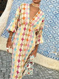 Overall für Damen – lässiger Schnitt, geometrisches Muster, atmungsaktiver Stoff, Hemdkragen und lange Ärmel. Ein Kleidungsstück, das Komfort und Stil mit einem modernen und raffinierten Design vereint.