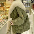 Deshalb sollte ‚Marjorie - Oversize-Entendaunen-Pufferjacke mit grünem Pelzkragen für Frauen‘ in Ihrem Kleiderschrank nicht fehlen: